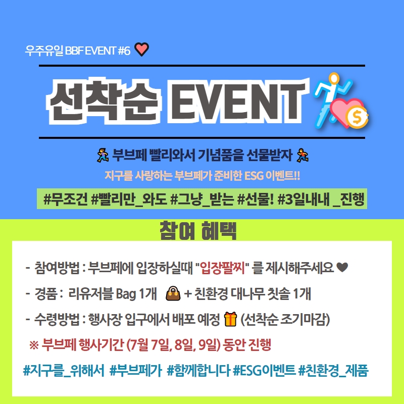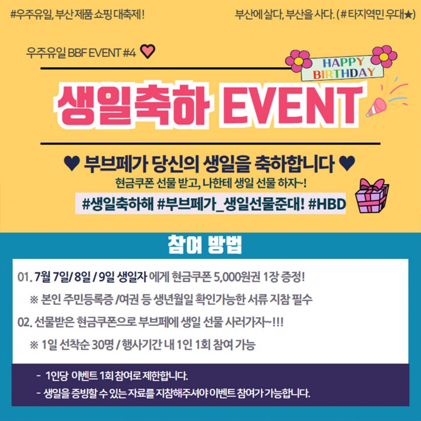 부산브랜드 쇼핑대축제! 2023 부브페 '현장이벤트' #한 눈에 보기 페이지 정보 작성자 부산브랜드페스타 조회 725회 작성일 23-07-04 15:25 본문 생일축하 / 선착순 / 큰손감사 /포토존 /부메랑(앞 게시물참고) 까지!!다양한 현장 이벤트가 기다리고있으니,많은 관심 부탁드립니다 !! 목록 이전글[행사 개최 알림] 2024 부산브랜드페스타 참가신청 OPEN! 24.01.30 다음글2023 부산브랜드페스타 참가업체 메뉴얼 (2차) 안내 23.07.03